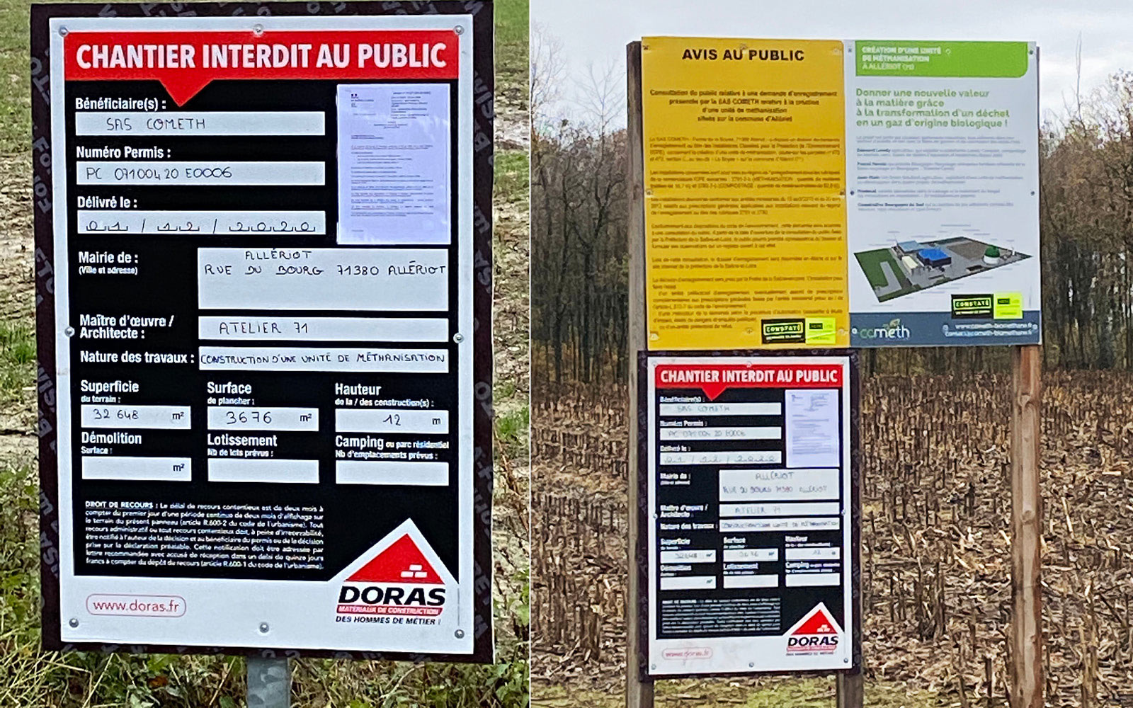 - Affichage sur l’emplacement devant recevoir l’unité de méthanisation