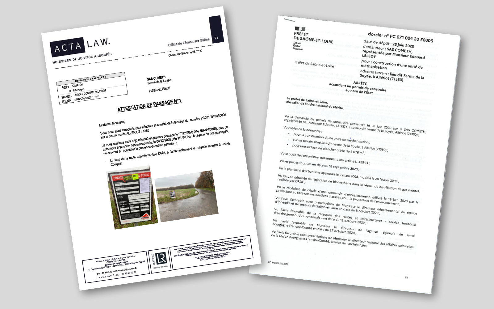 La feuille de route est tenue avec un permis de construire accordé par le Préfet de Saône et Loire au 1er Décembre 2020.