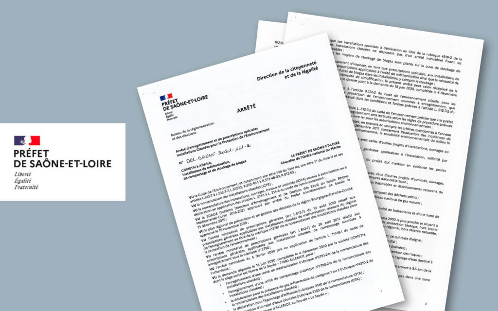 Suite à l’enquête publique, la Sté Cometh a reçu son Arrêté Préfectoral lui permettant de poursuivre sa feuille de route quant à la réalisation de son site de méthanisation.