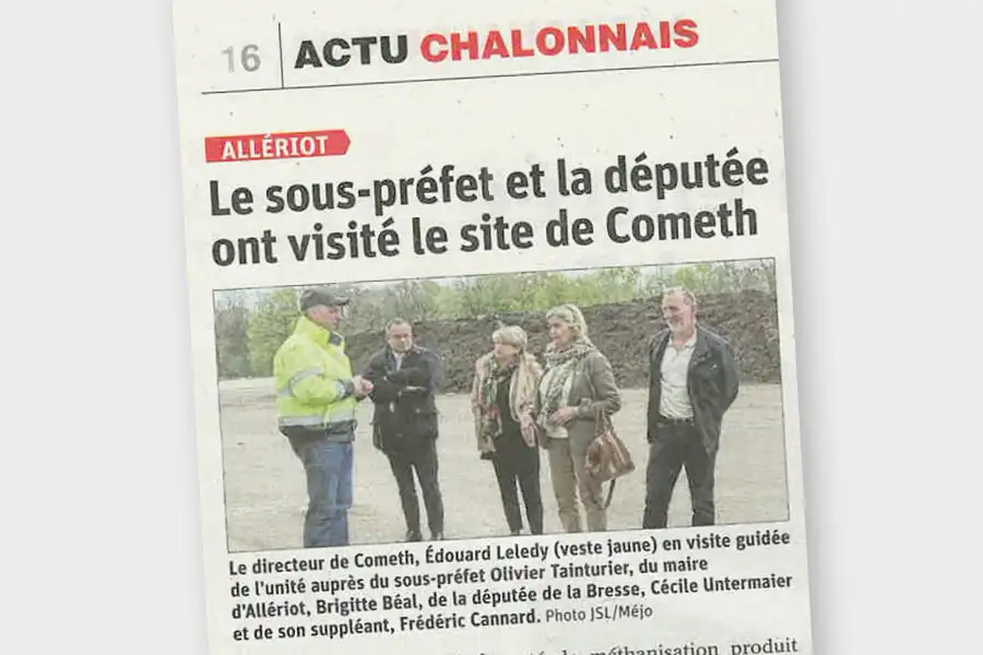 Le sous-préfet de Chalon-sur-Saône, Olivier Tainturier, ainsi que Cécile Untermaier, députée de la Bresse ont visité l’unité de méthanisation de Cometh !