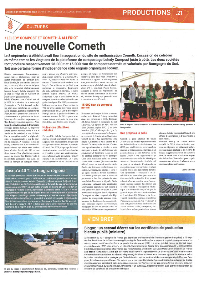 La Sté Cometh est mise en lumière pour mieux faire connaître son engagement en faveur d’une filière de méthanisation locale, responsable et durable, au service des acteurs économiques du territoire !
